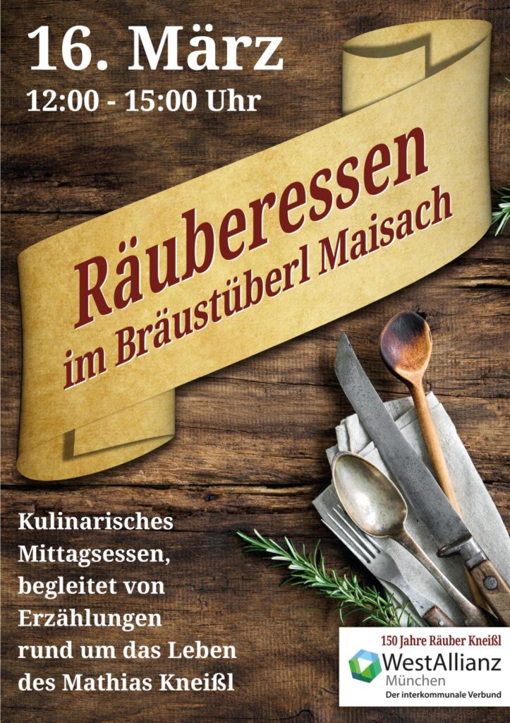 Das Räuberessen bildete den Auftakt zum Räuber Kneißl Jubiläumsjahr 2025, das mit einer Fülle an Aktivitäten aufwartet. Gefeiert wird über das Jahr hinweg das 5-jährige Jubiläum des Radwegs (https://räuber-kneissl-radweg.de), aber auch der 150. Geburtstag von Namensgeber Mathias Kneißl. Er wurde am 12. Mai 1875 in Unterweikertshofen, einem Ortsteil der Gemeinde Erdweg im Landkreis Dachau, geboren.